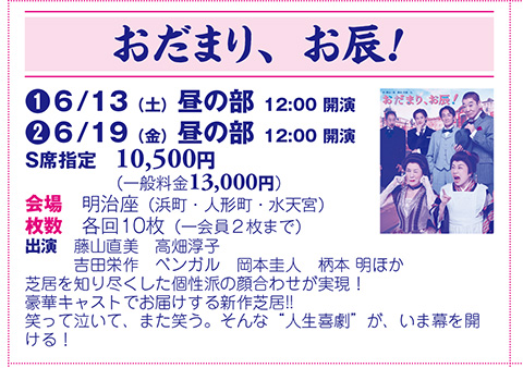 おだまり、お辰!❶6/13(土)昼の部 12:00 開演