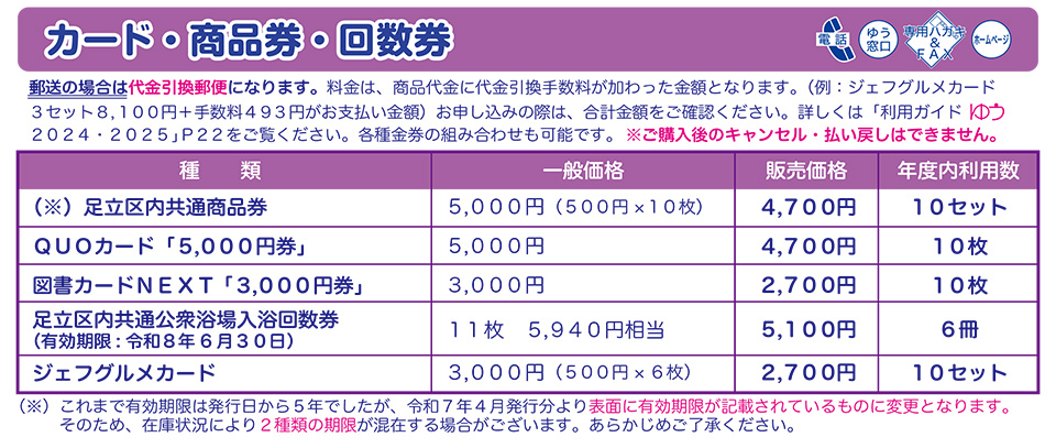 例)クオカード・図書カード 2セット=2枚 例)公衆浴場回数券 2セット=2冊です。