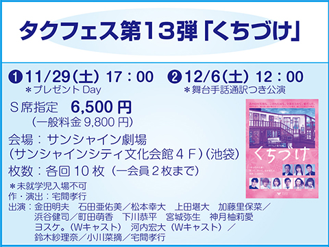 タクフェス第13弾「くちづけ」❶11/29(土)17:00