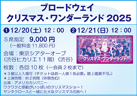 ブロードウェイ クリスマス・ワンダーランド2025 ❷12/21(日)12:00