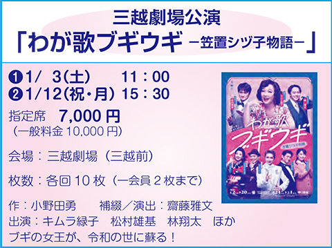 三越劇場公演 「わが歌ブギウギ -笠置シヅ子物語-」❶1/ 3(土) 11:00