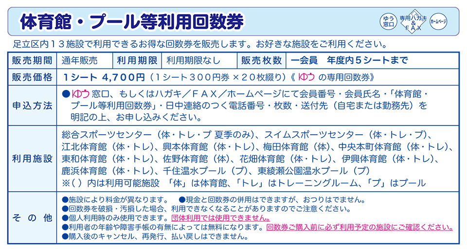 体育館・プール等利用回数券