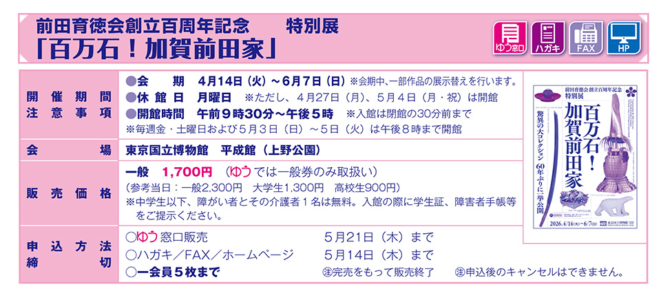前田育徳会創立百周年記念 特別展 「百万石!加賀前田家」