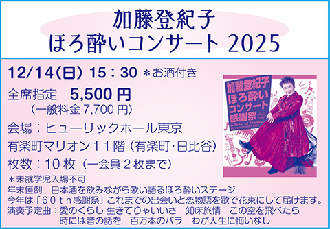 加藤登紀子 ほろ酔いコンサート2025