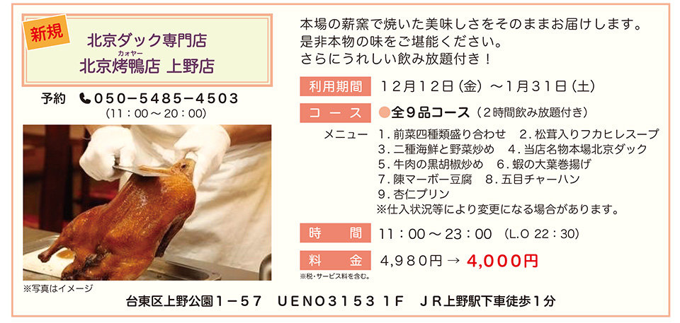 北京ダック専門店 北京烤鴨店 上野店