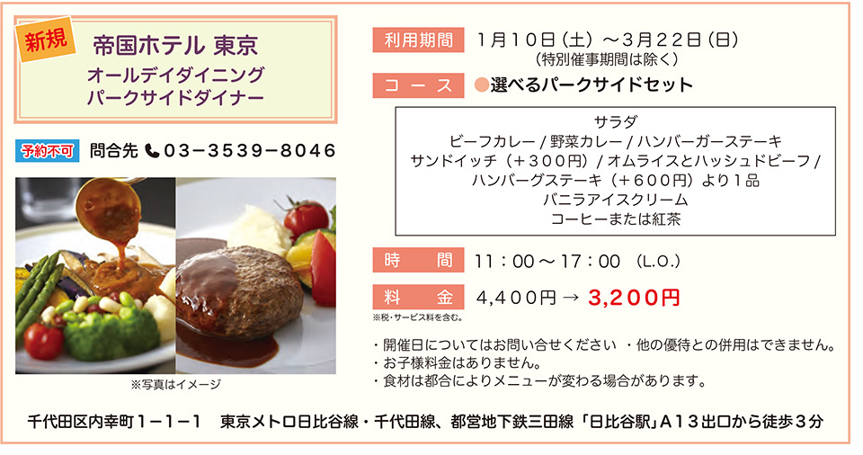 帝国ホテル 東京 オールデイダイニング パークサイドダイナー 選べるパークサイドセット