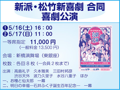 新派・松竹新喜劇 合同 喜劇公演❶5/16(土)16:00