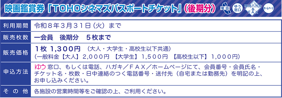 映画鑑賞券「TOHOシネマズパスポートチケット」(後期分)