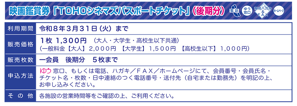 映画鑑賞券「TOHOシネマズパスポートチケット」 ( 後期分)