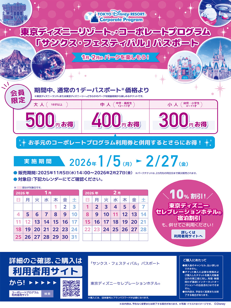 【1枚1,000円補助券×2枚】東京ディズニーリゾート・コーポレートプログラム利用券 2枚で1セット
