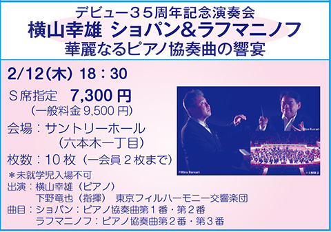 横山幸雄 ショパン&ラフマニノフ 申込期間終了