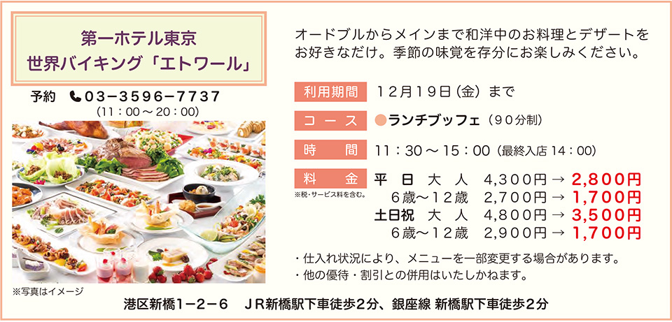 第一ホテル東京 世界バイキング「エトワール」平日 6歳〜12歳