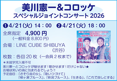 美川憲一&コロッケ ❶4/21(火)14:00