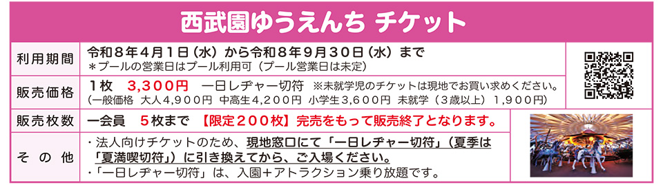 【発送は3/25以降】令和8年度西武園ゆうえんち チケット