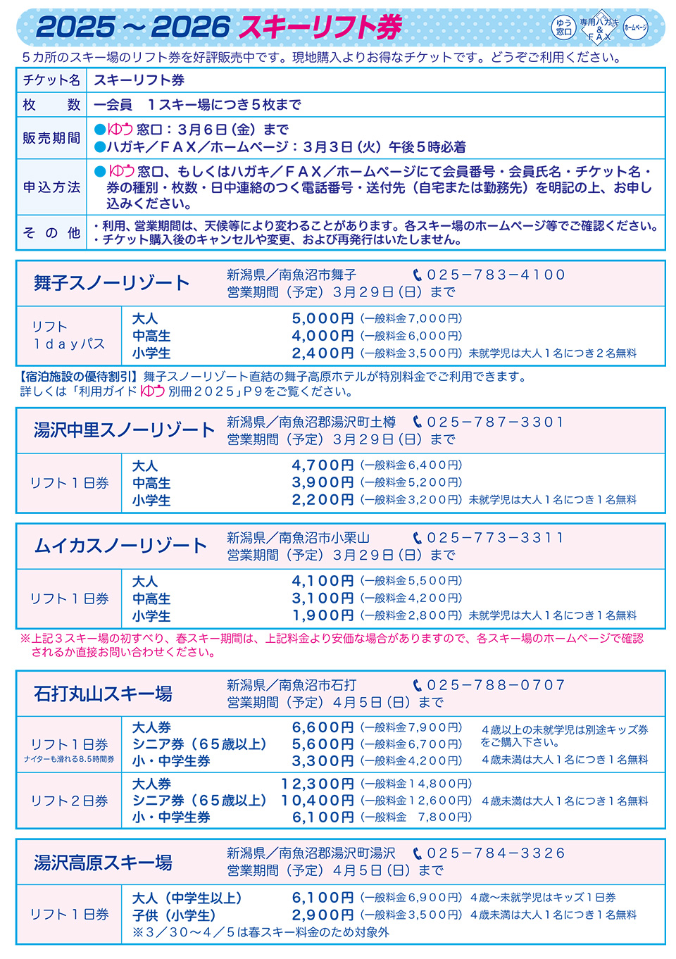 湯沢高原スキー場 リフト一日券 大人(中学生以上)